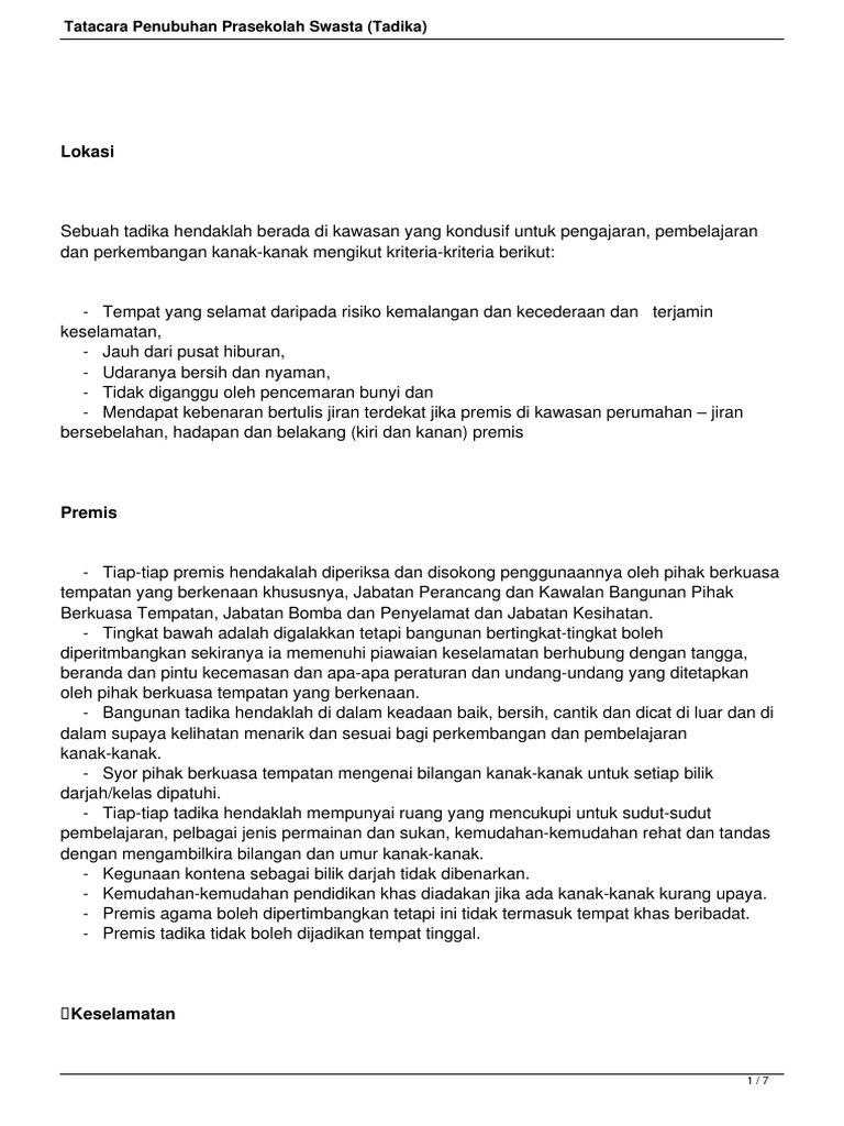 Panduan perniagaan perkhidmatan tadika hakcipta terpelihara kuliah 3 prosedur penubuhan tadika swasta. Pernyataan dasar institusi pendidikan swasta, kementerian pelajaran malaysia, 2012. Dana bos afirmasi sekitar rp2 triliun. Savesave tatacara penubuhan prasekolah swasta tadika for later. Penubuhan tadika swasta perlu didaftar dengan jabatan pelajaran negeri (jpn), iaitu di bawah unit pendidikan swasta.